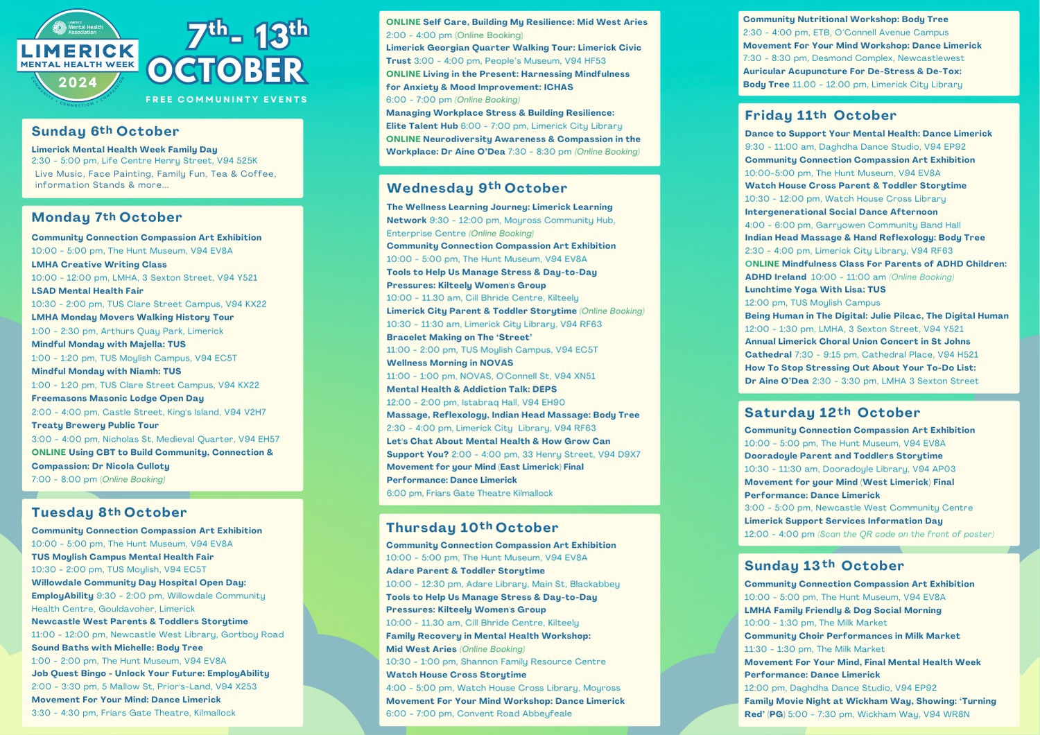 Limerick Mental Health Week 2024 - Oct 7th to Oct 16th