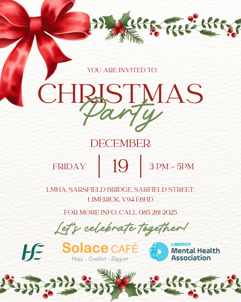 We’d love to invite all LMHA and Solace Cafe service users to our Christmas Party on Friday 19th December, from 3pm–5pm!